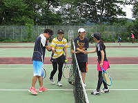 松本信金と交流戦松本信金のテニスチームと「豊科南部運動公園」で交流戦を行いました。 |